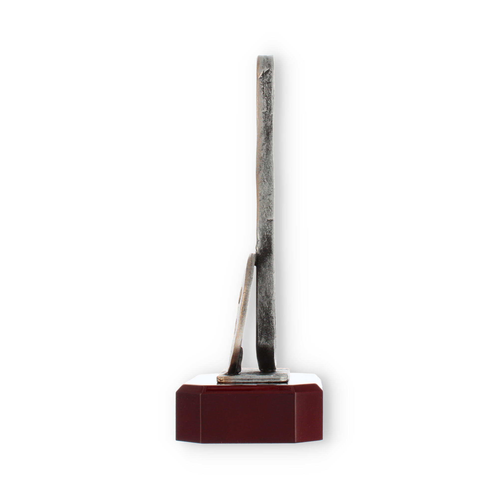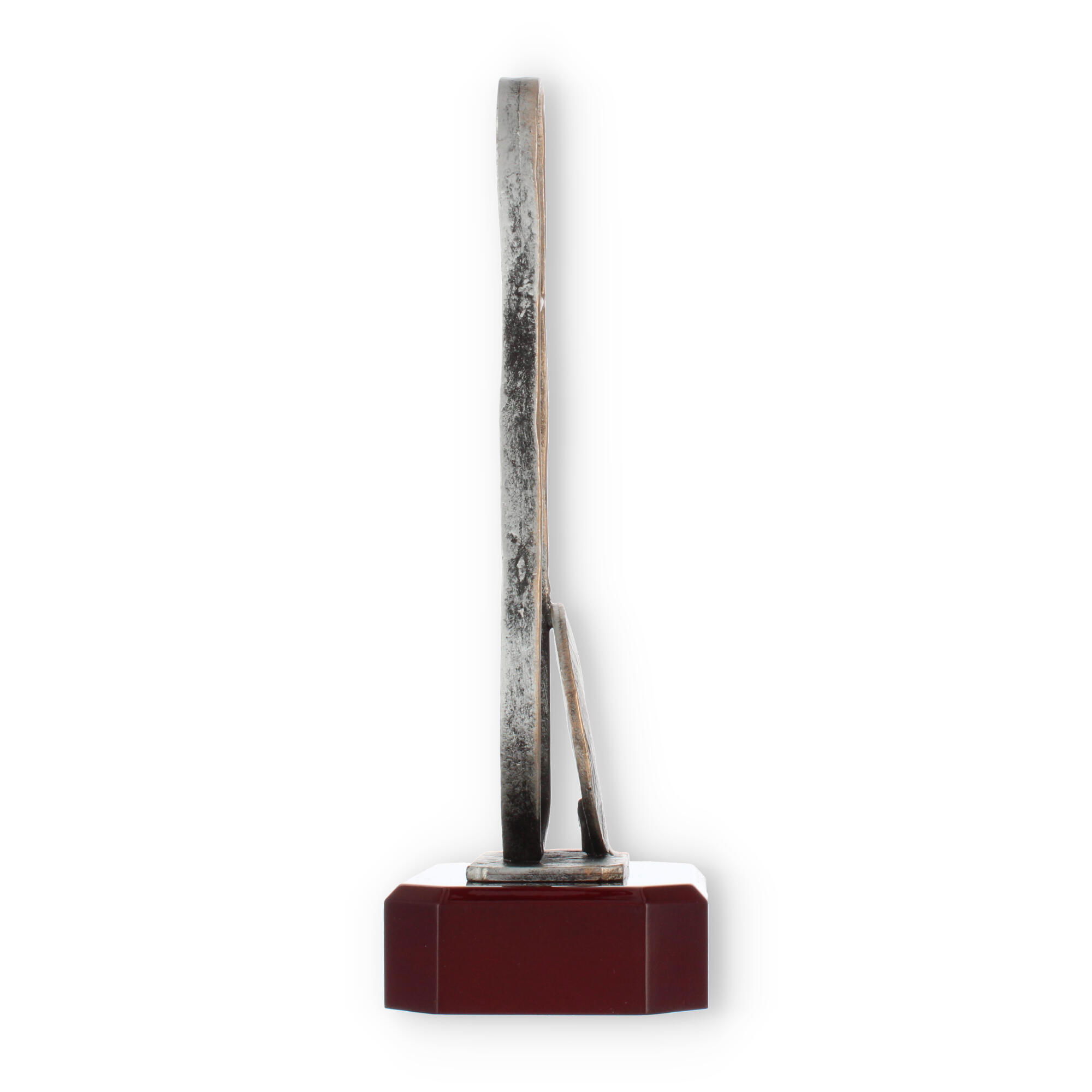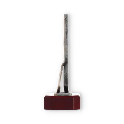 Mediindo 23,5 cm de altura e pesando 680 g, esta peça é facilmente manuseável e impressionante ao mesmo tempo. A figura em si se eleva com impacto visual, garantindo que o troféu se destaque e seja apreciado por todos os presentes.