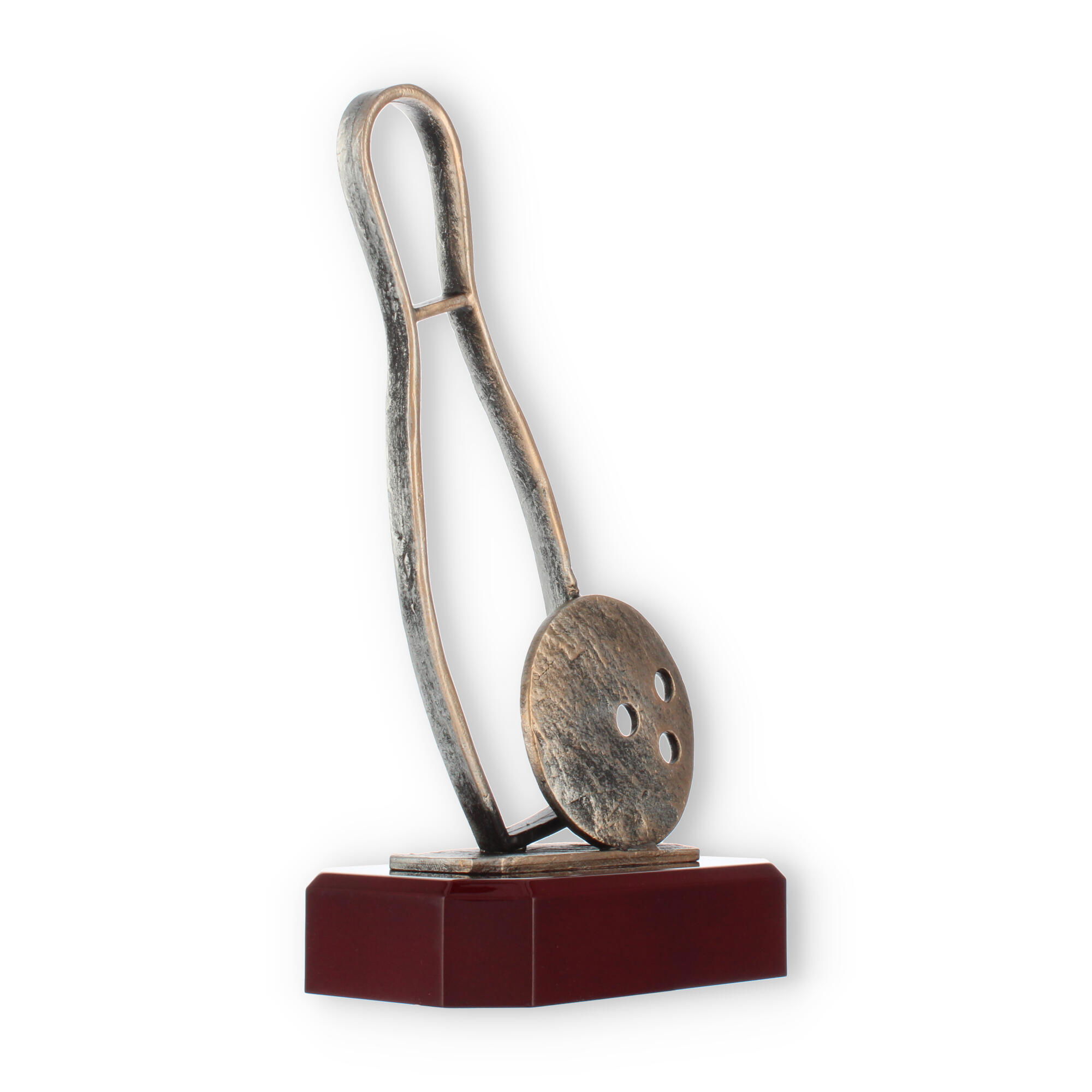 O Troféu Bowling é uma escolha distinta para qualquer torneio ou evento de boliche. A combinação de formas modernas com um toque clássico faz deste troféu uma peça essencial para celebrações de conquistas.