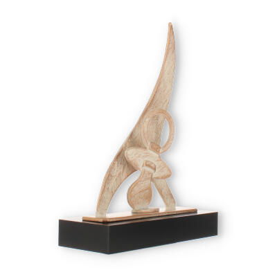 Die geschwungene Form der Figur symbolisiert Dynamik und Bewegung, perfekt geeignet, um die Errungenschaften der Preisträger würdig zu feiern. Der robuste Holzsockel sorgt für eine stabile Aufstellung und kann mit einem personalisierten Gravurschild versehen werden. Das goldfarbene Gravurschild bietet Platz für Deine individuelle Botschaft und verleiht dem Pokal eine persönliche Note.