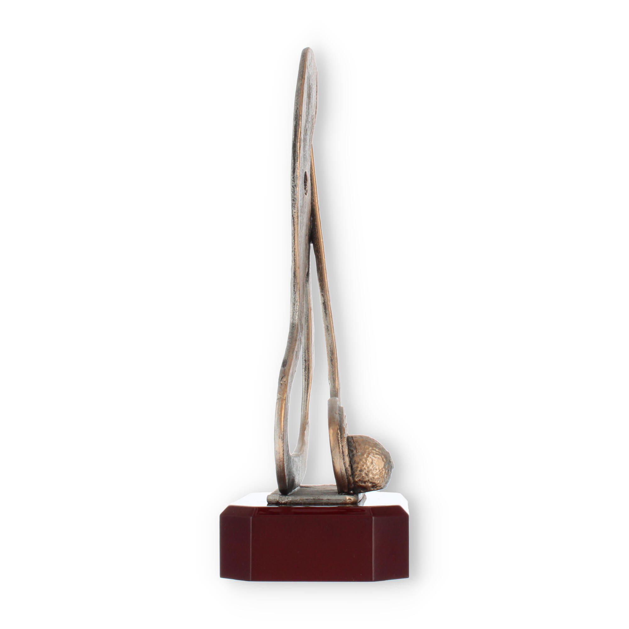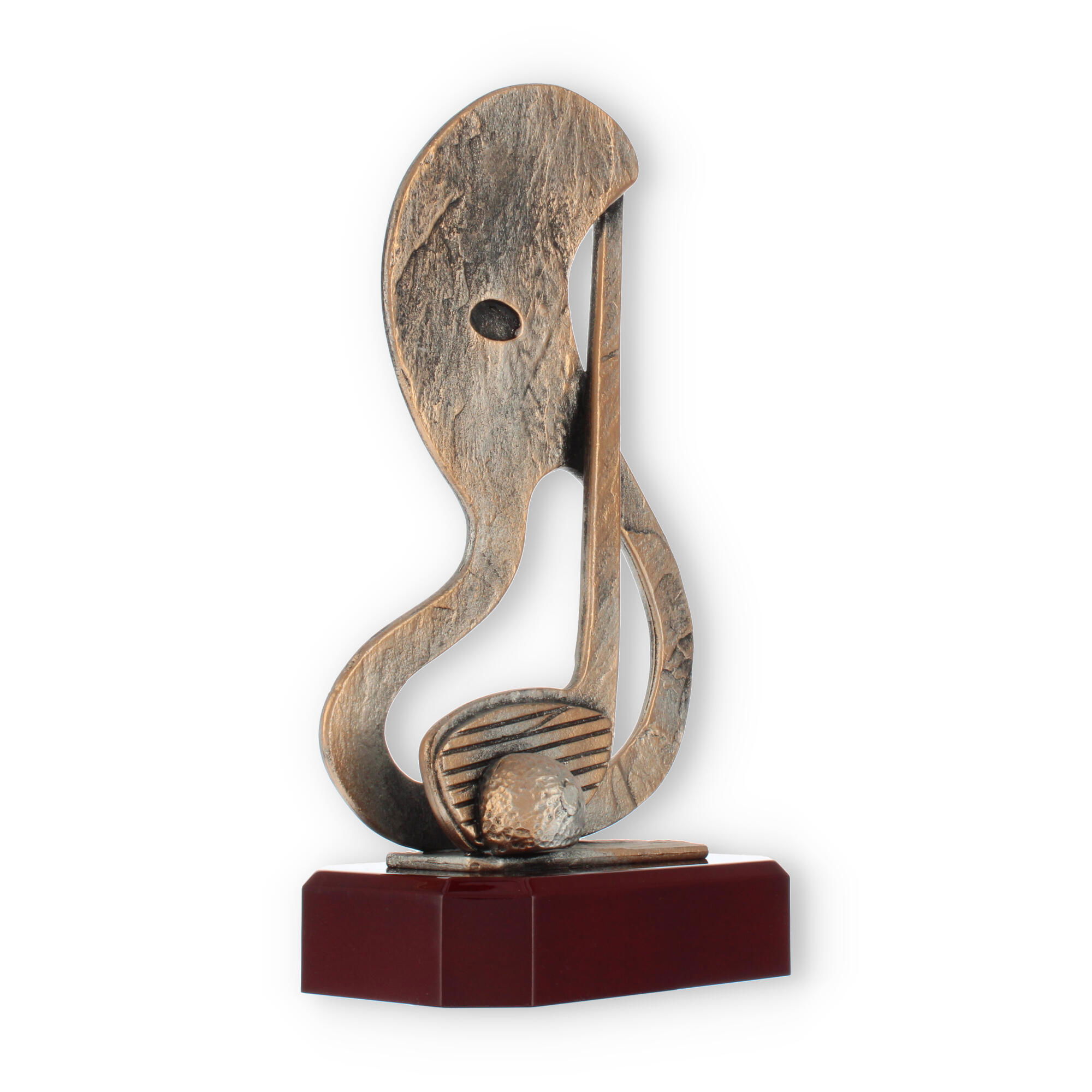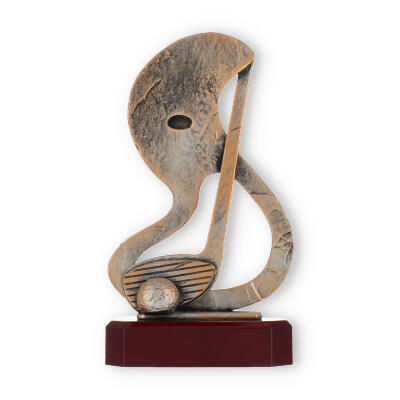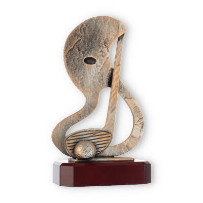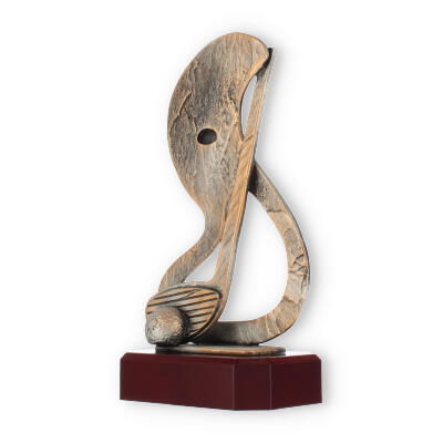 Die Pokal Zamakfigur Golfplatz vereint kunstvolles Design mit hochwertigen Materialien und ist ein wahres Highlight bei jeder Preisverleihung. Die Figur besticht durch ihre altgoldfarbene Erscheinung und detaillierte Darstellung eines Golfschlägers und Golfballs, die sofort ins Auge fällt und beeindruckend wirkt.