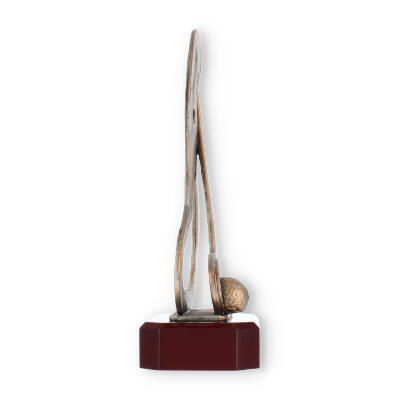 Der Sockel aus Holz ist in einer edlen mahagonifarbenen Optik gestaltet und bietet eine stabile Grundlage für die eindrucksvolle Figur. Mit einer Höhe von 24,0 cm und einem Gewicht von 1,09 kg liegt der Pokal gut in der Hand und verleiht dem Gewinner ein stolzes Gefühl, diesen besonderen Preis entgegenzunehmen.