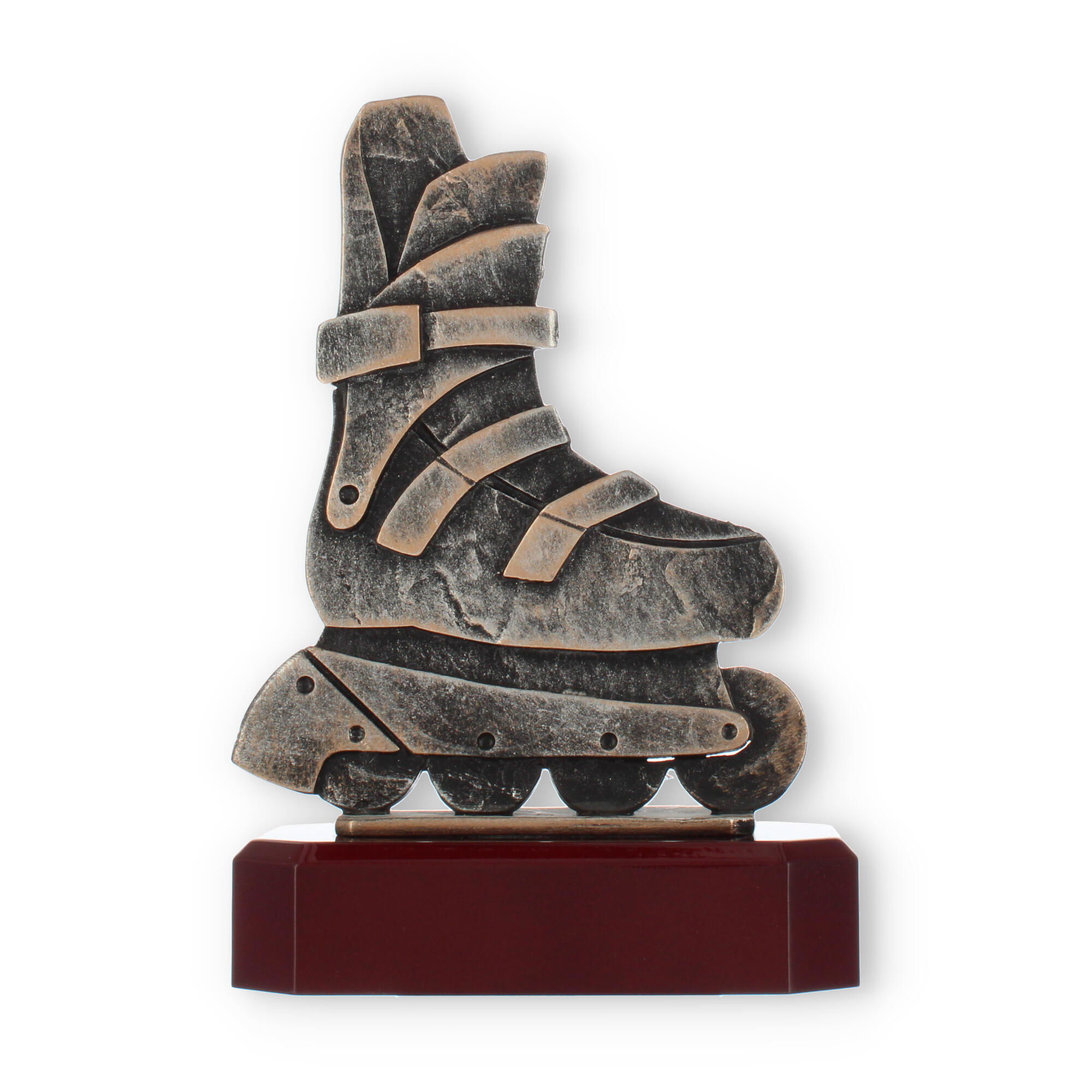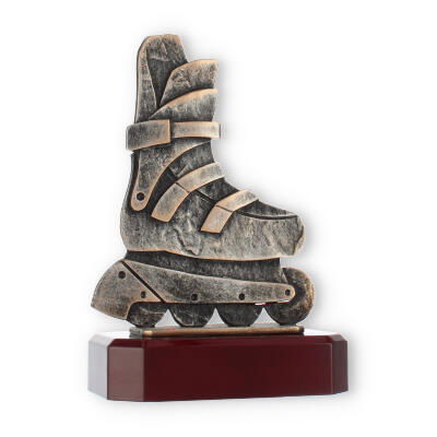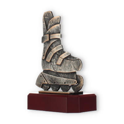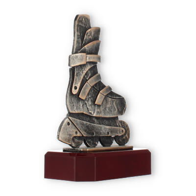 De Beker Inline Skater, gemaakt van zamak, schittert in oud-goudkleurige tinten en rust op een mahoniekleurige houten voet. Personaliseer met een gravure om dit trofeefiguurtje tot een unieke prijs te maken die iedere winnaar trots maakt.