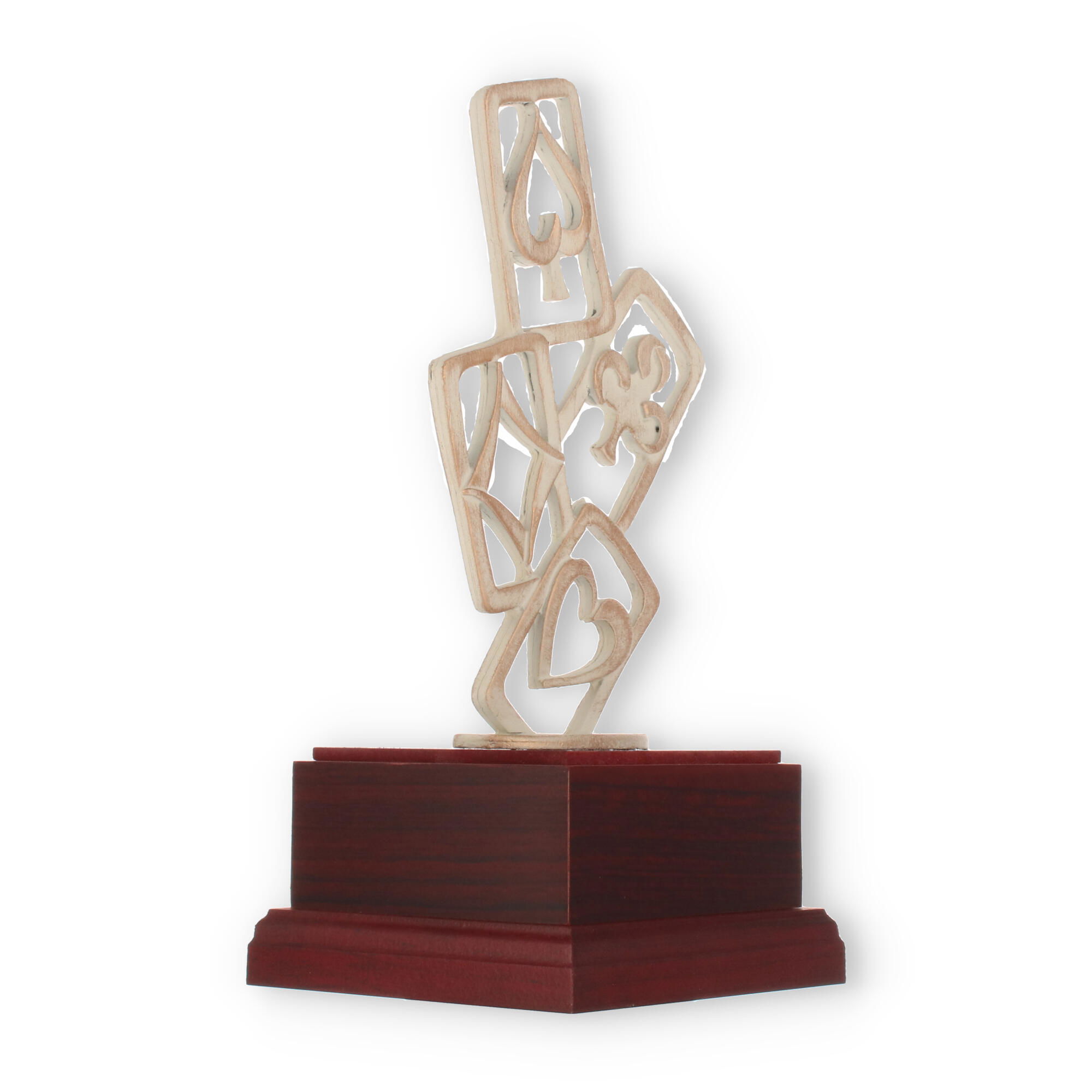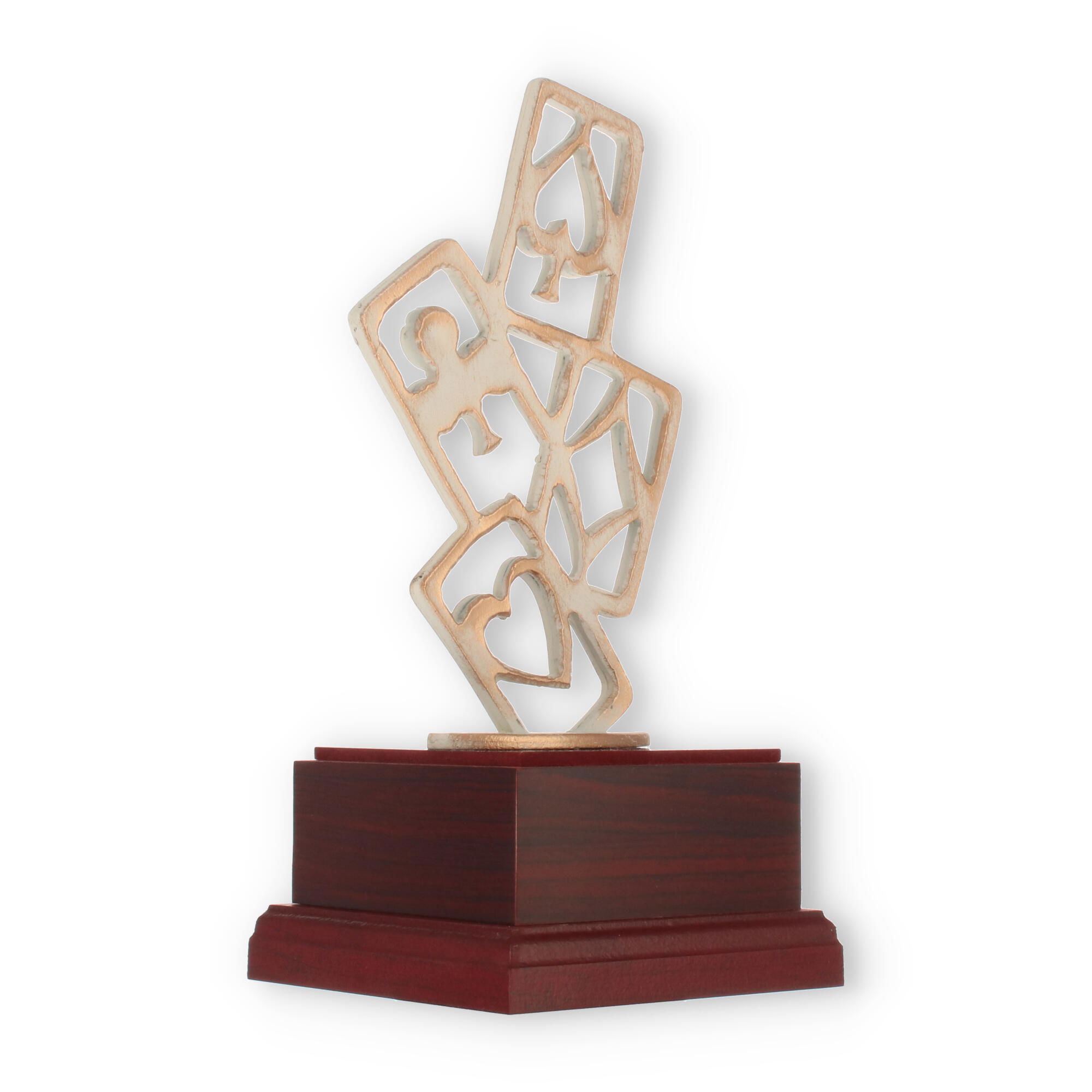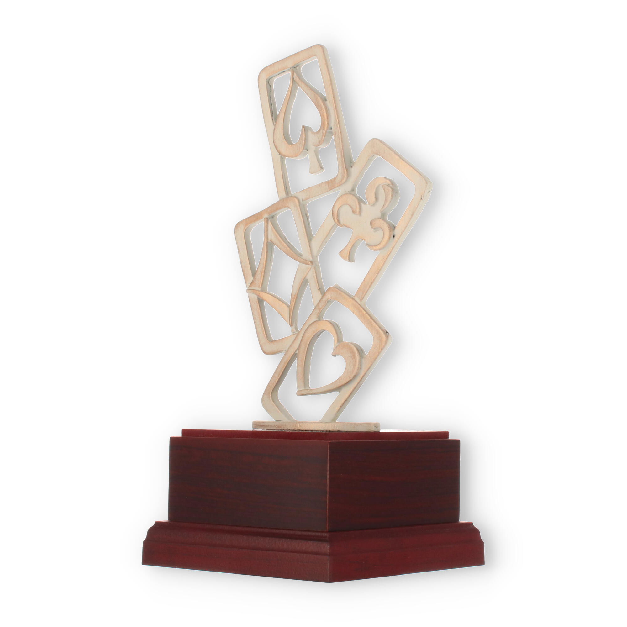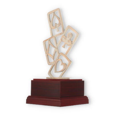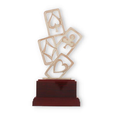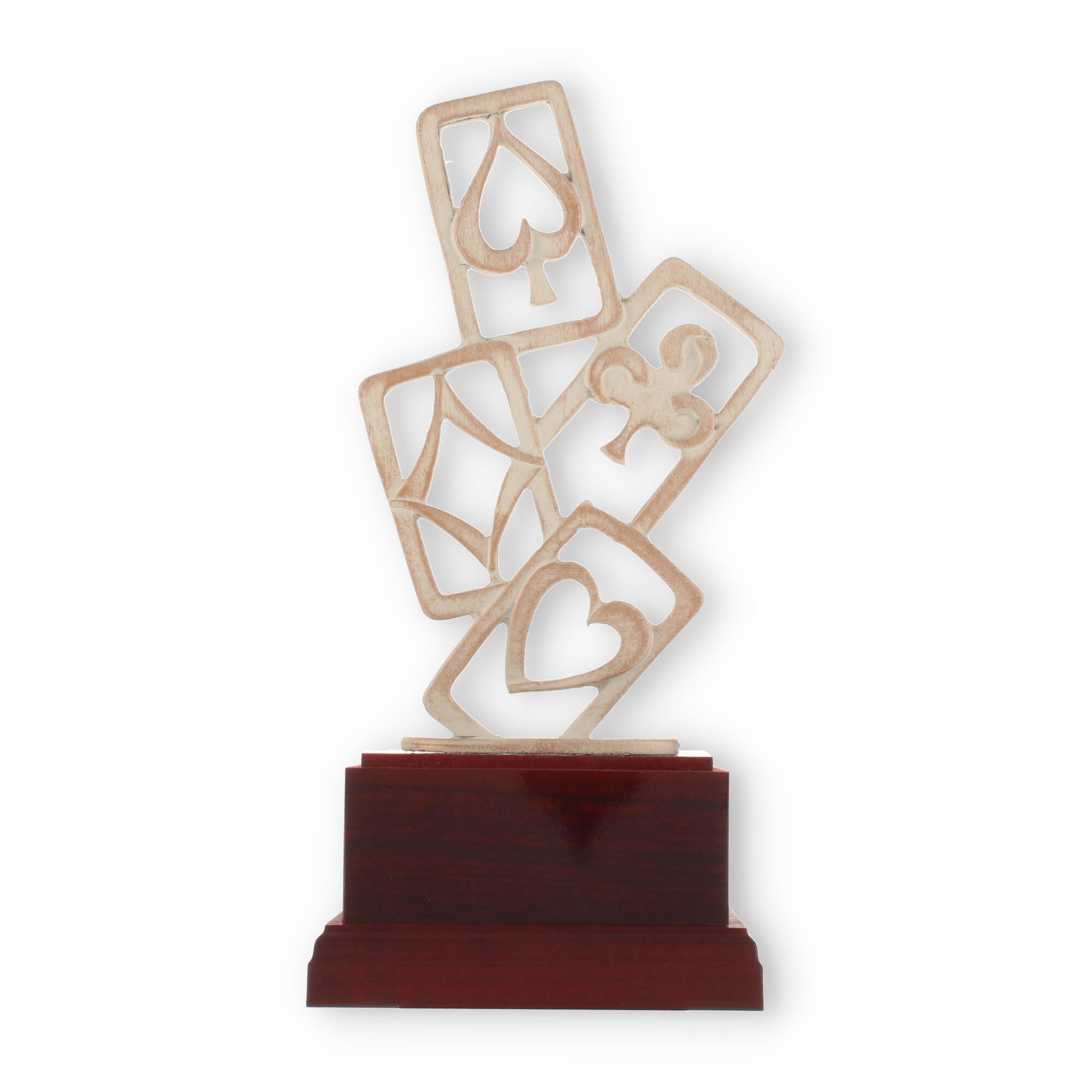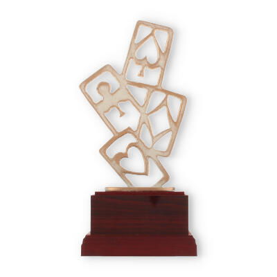 La Figura de trofeo Naipes no es cualquier galardón; es un símbolo de éxito especial para aquellos que dominan en el arte del juego. Erguido sobre una base de madera en acabado caoba, el trofeo irradia con su vistoso diseño en metal de color dorado y blanco.