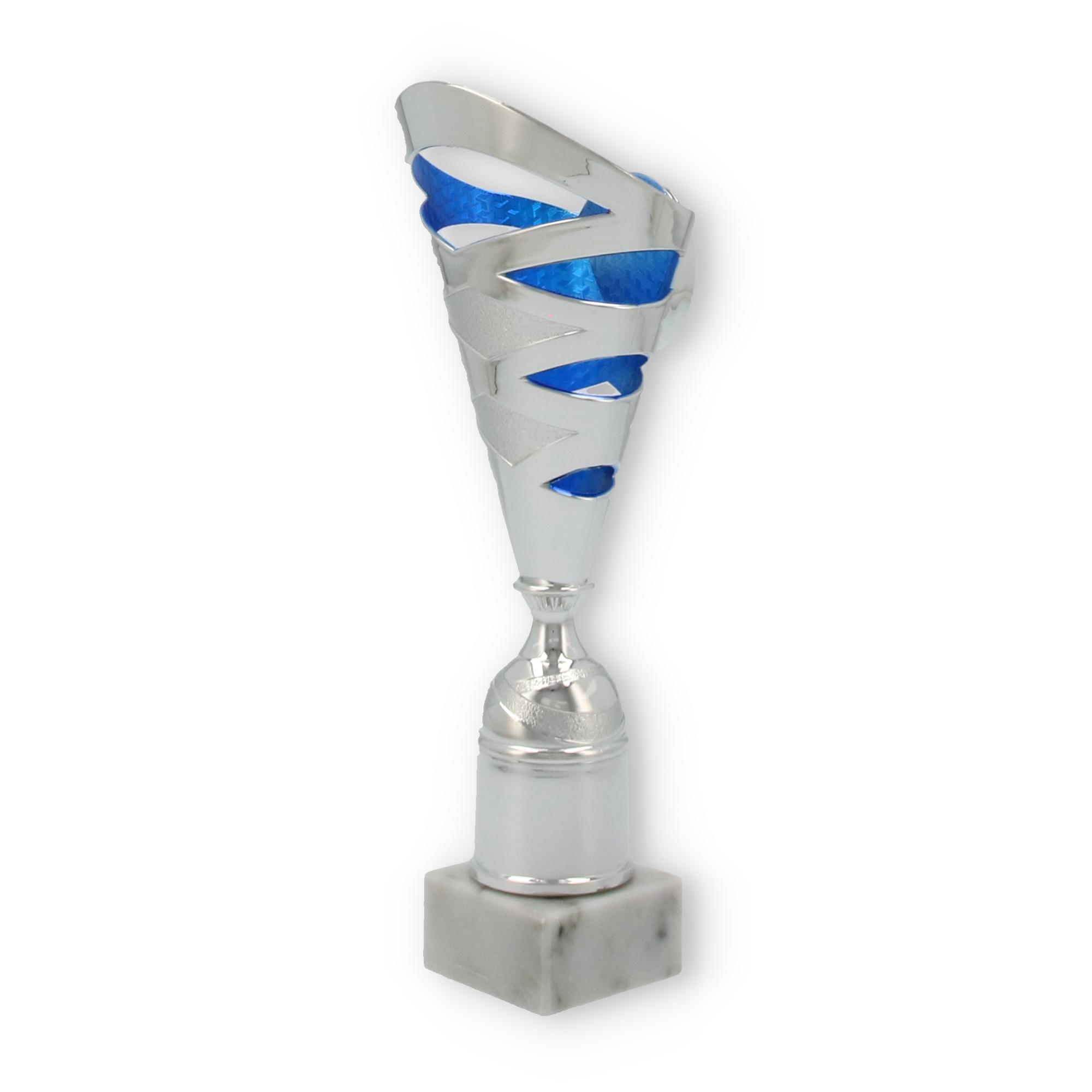 Les Coupes Amin incarnent un mariage harmonieux de tradition et de modernité. Posées sur un socle solide en marbre blanc, elles sont remarquables par leur élégance discrète. Le fût, en plastique de couleur argentée, est orné d'une spirale bleue qui capte le regard et confère un aspect novateur.