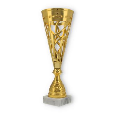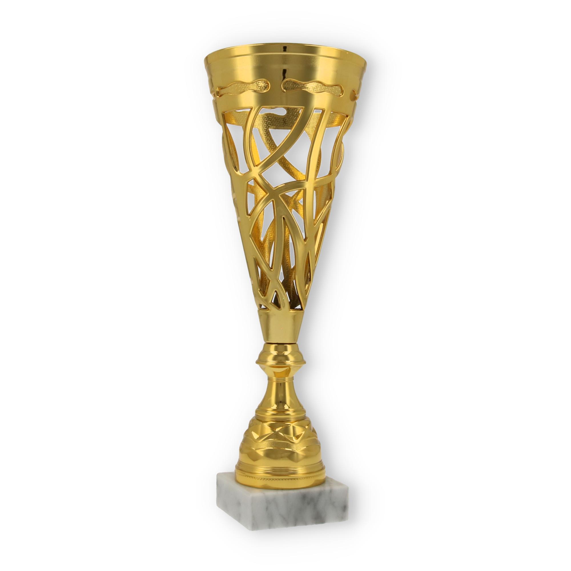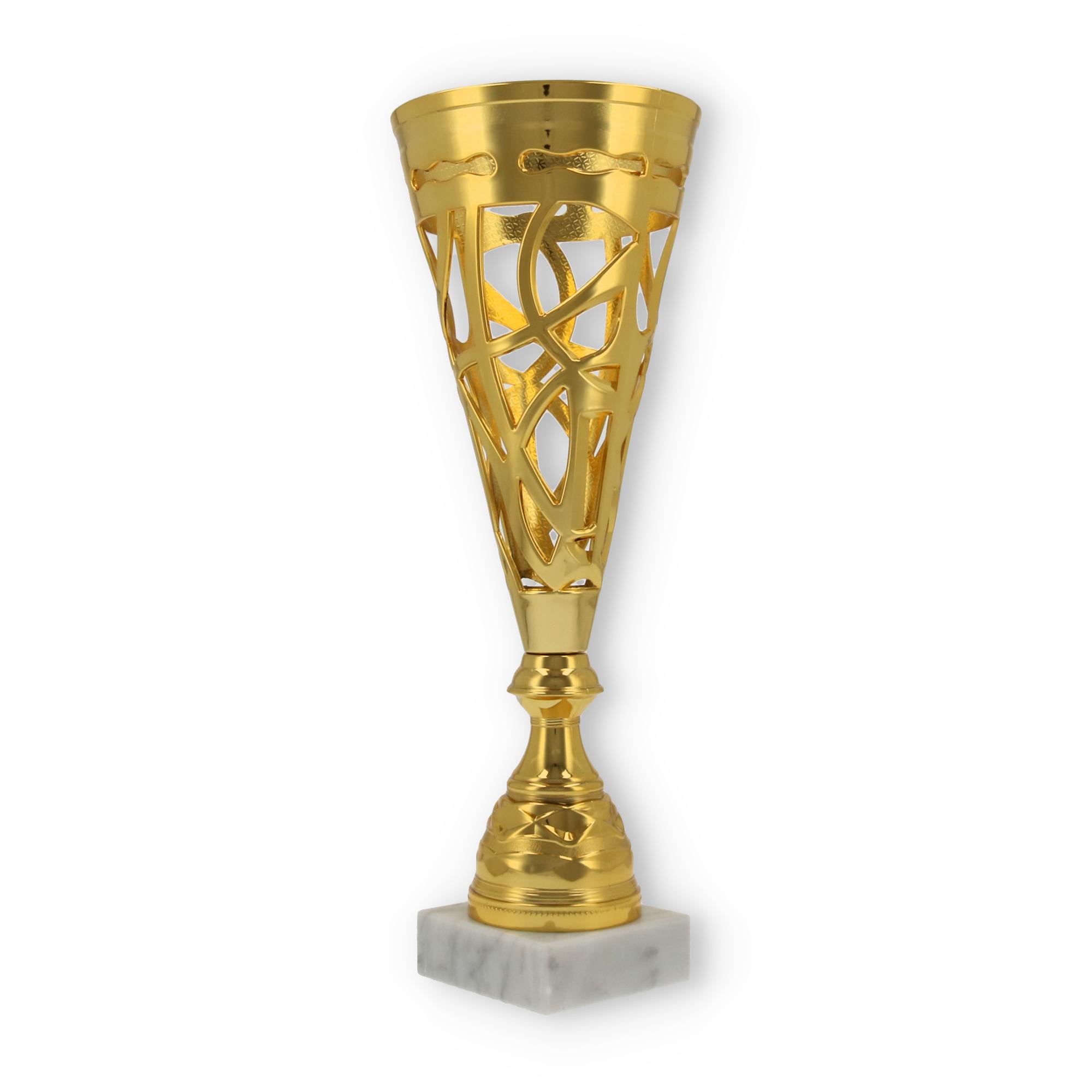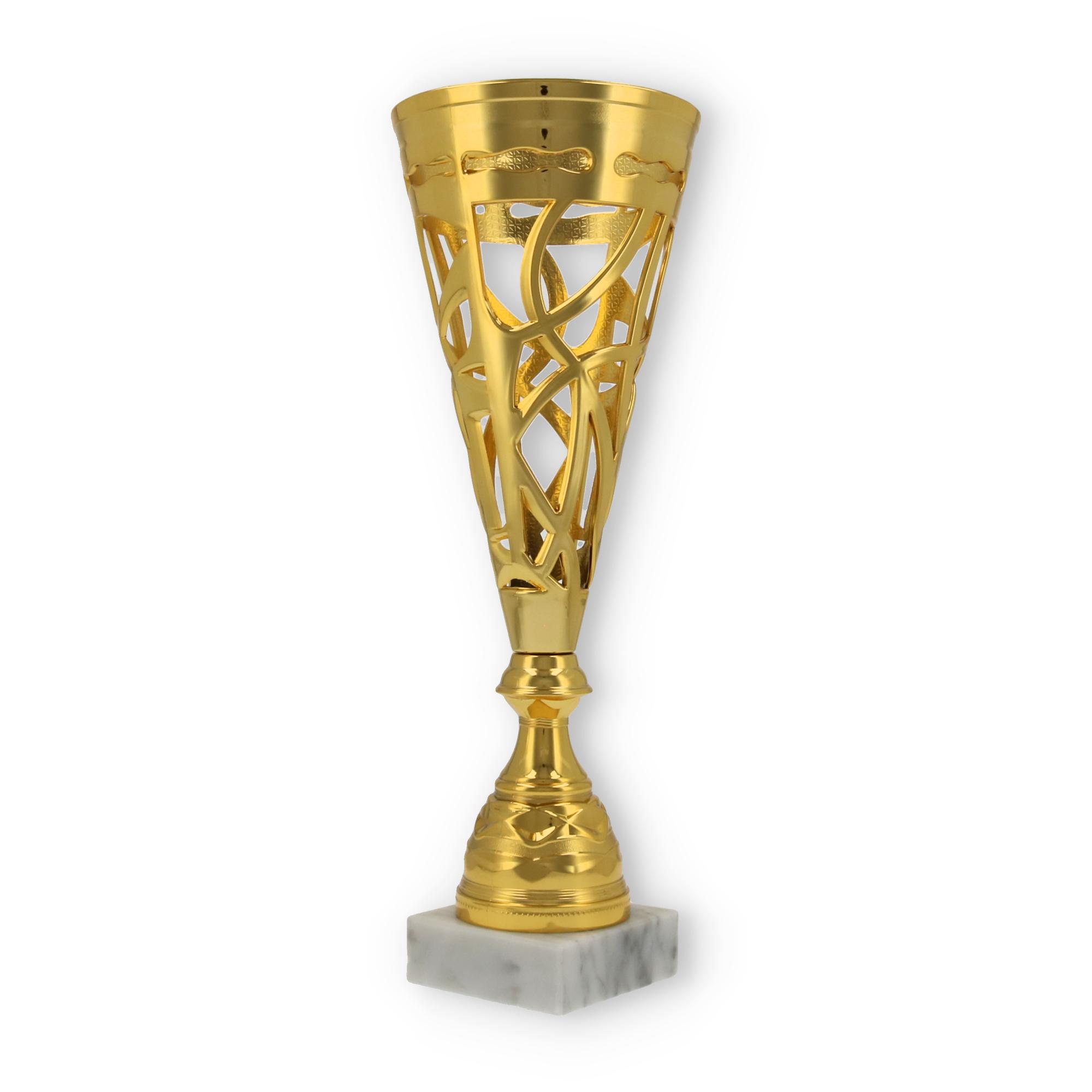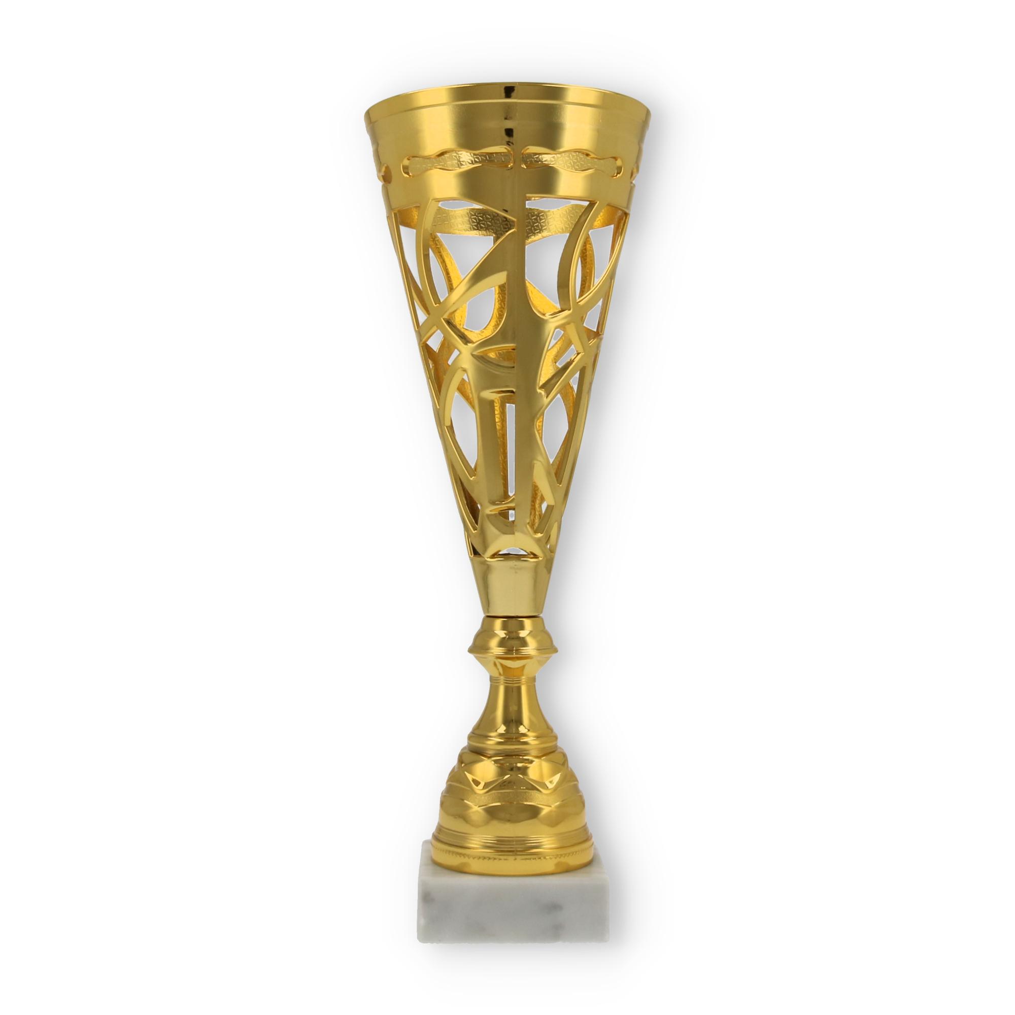 Unterstützt wird diese Wirkung durch den stabilen Sockel aus marmoriertem Material. Er verleiht dem Pokal nicht nur Stabilität, sondern auch eine gewisse Eleganz, die jede Zeremonie bereichert.