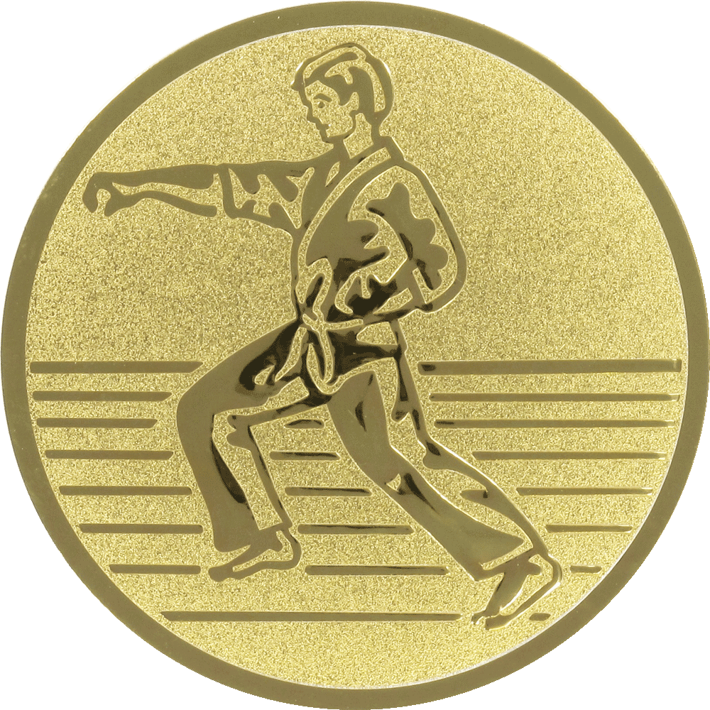 O emblema de alumínio dourado com 25mm destaca-se em qualquer premiação de karaté. Com um design detalhado, ele personifica a dedicação e o espírito esportivo em cada evento.