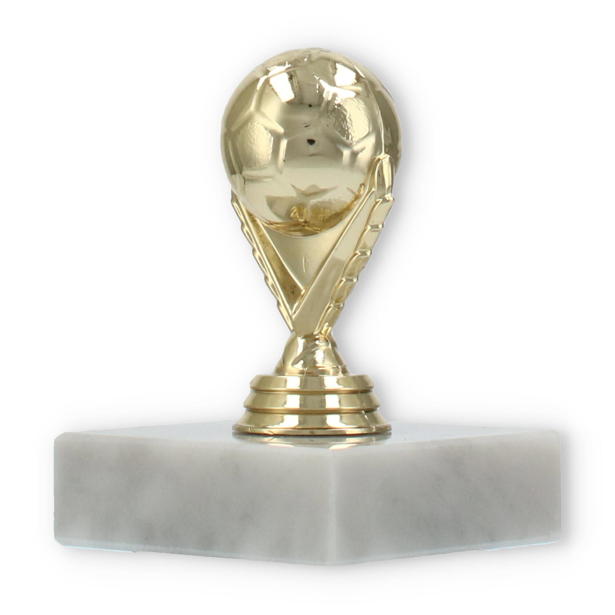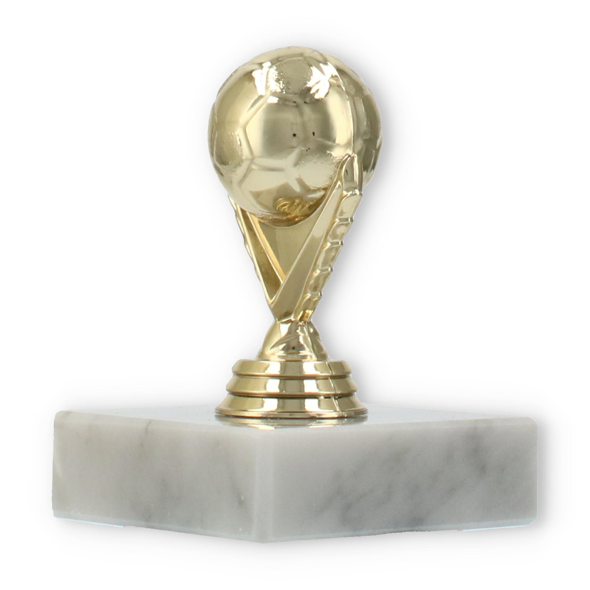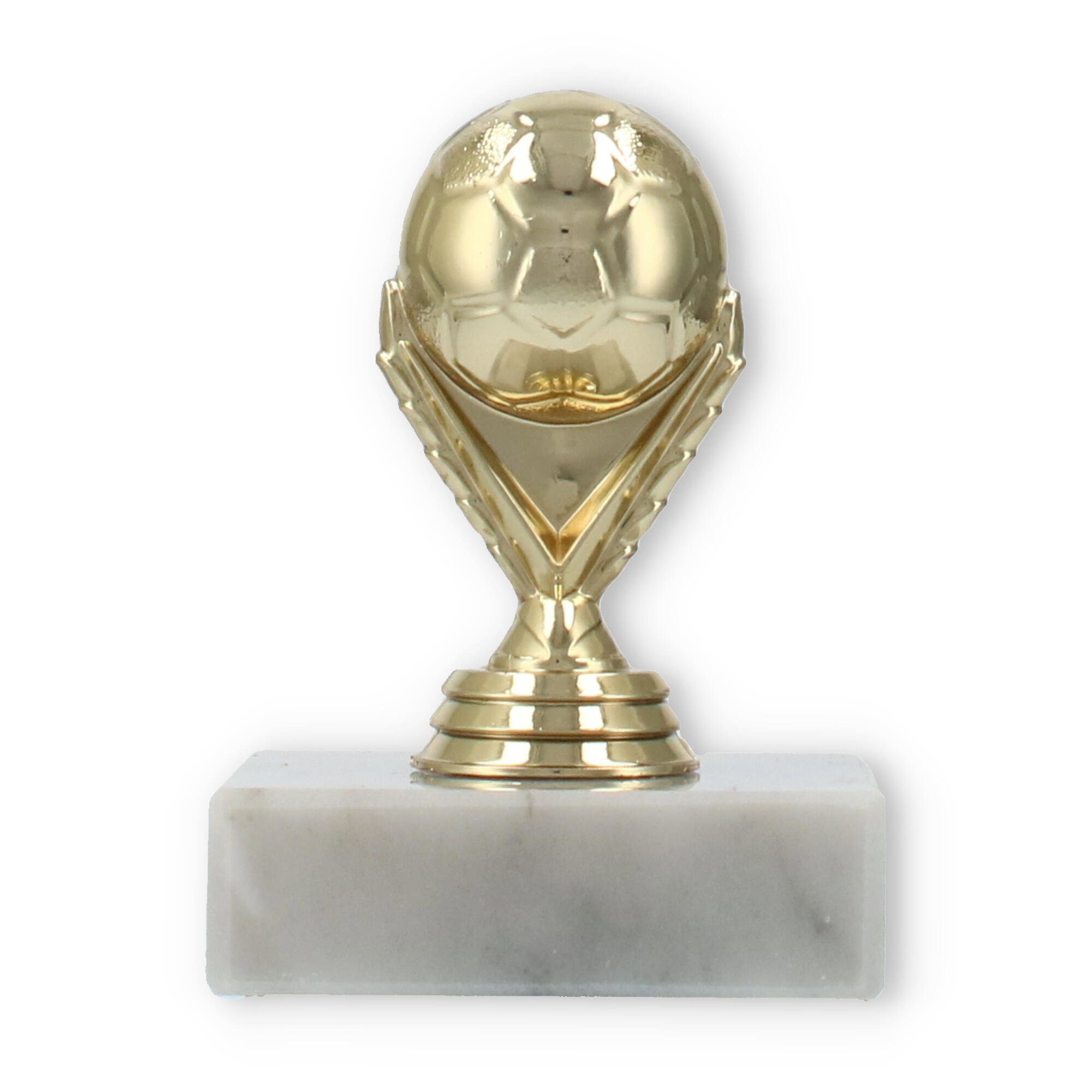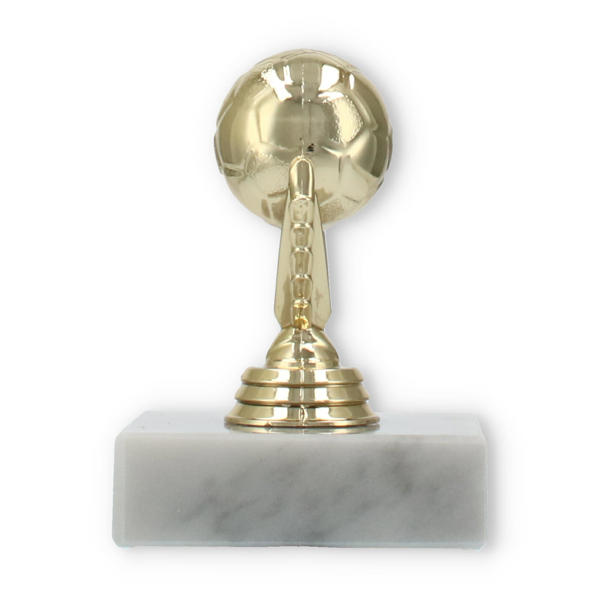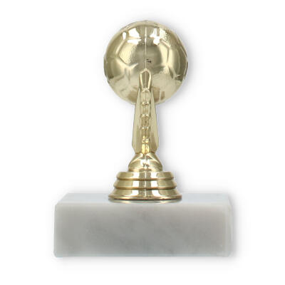 Destacado pelo design único, o troféu figura futebol dourado sobre base de mármore branco é perfeito para eventos especiais. Com opções de personalização, honre o sucesso dos seus campeões de forma memorável.