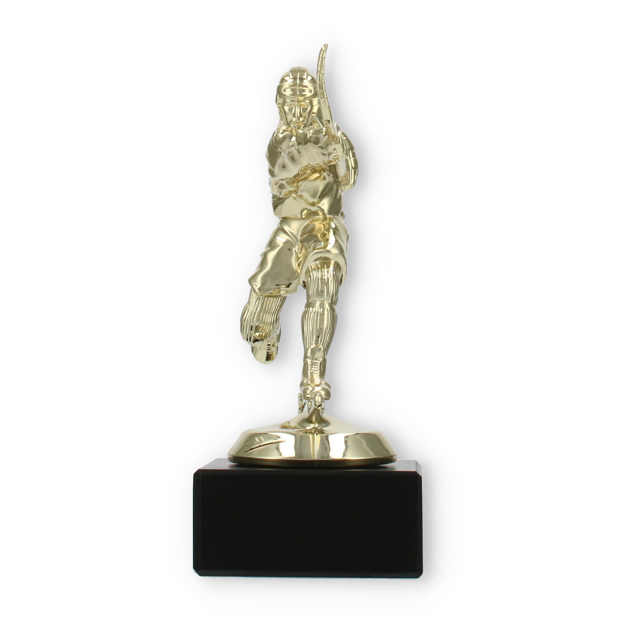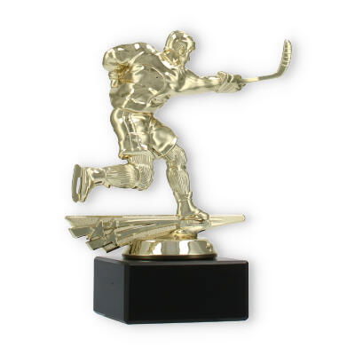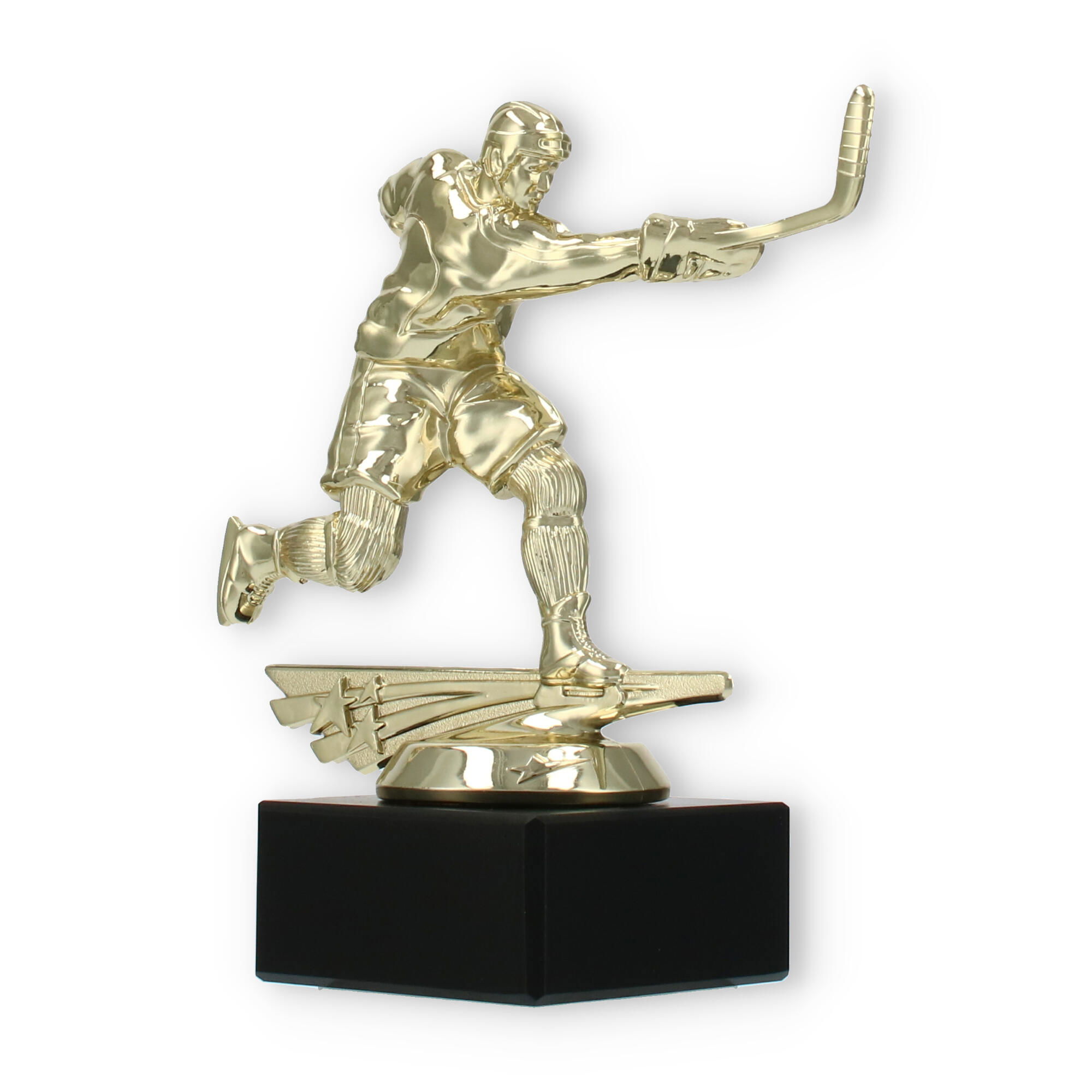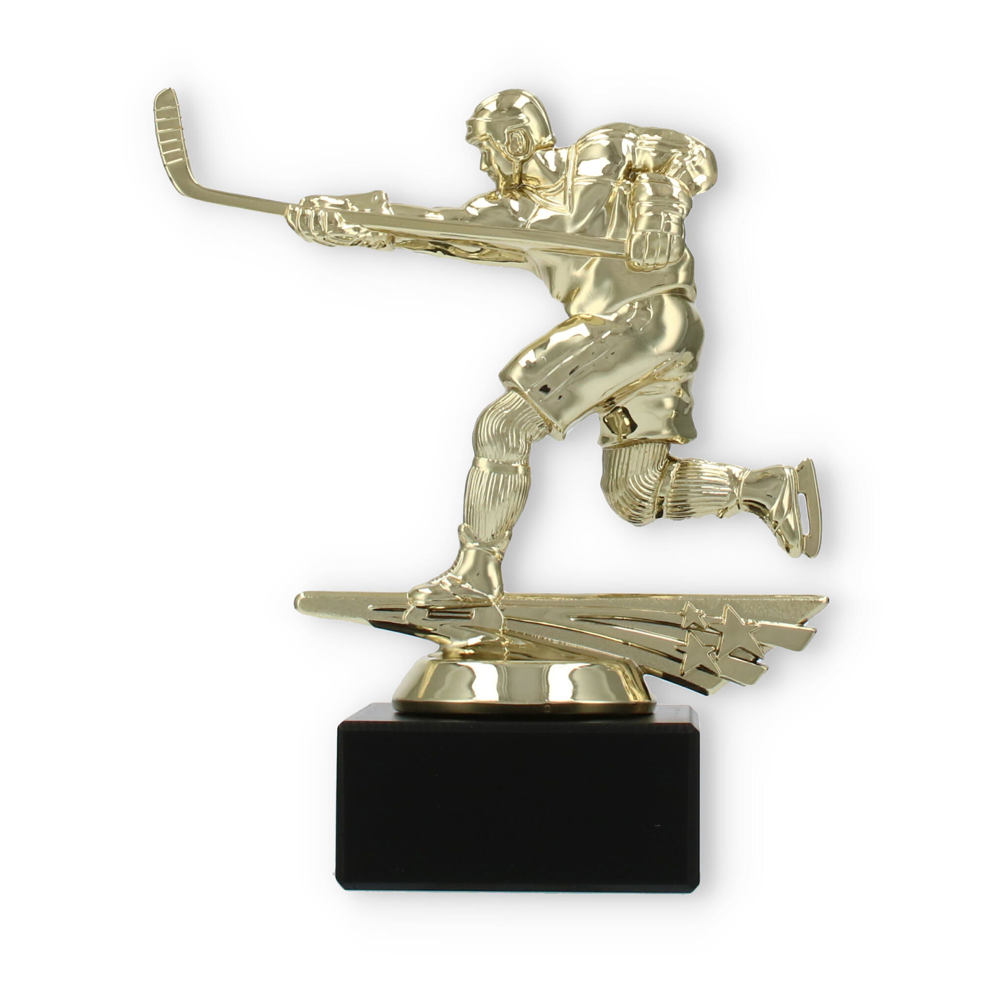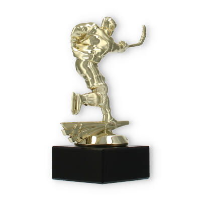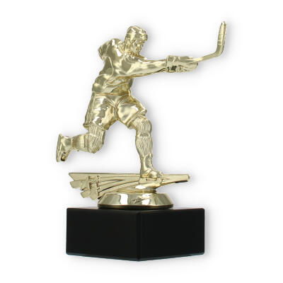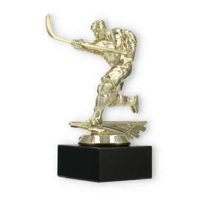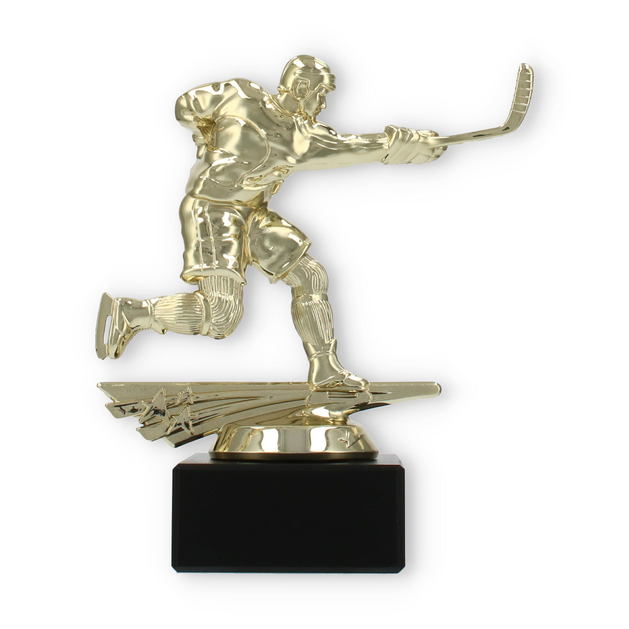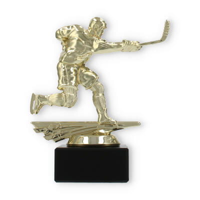 A figura do jogador, feita de plástico em cor dourada, captura habilmente cada detalhe da ação no gelo, desde o capacete até os patins. Cada aspecto do troféu reflete a dedicação dos atletas, tornando cada premiação um testemunho do esforço e da superação.