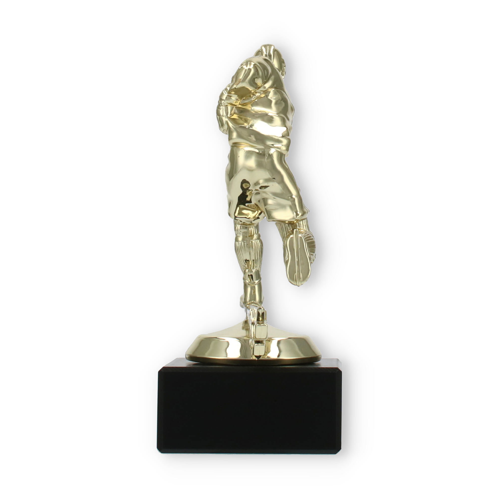 A base sólida de mármore preto não apenas oferece estabilidade, mas também contrasta lindamente com a figura, criando um visual harmonioso que resplandece sob qualquer iluminação. Esta peça não é apenas um prêmio; é uma celebração de habilidade e paixão que motiva os competidores a darem o melhor de si.