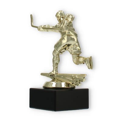 Vivencie a emoção de premiar com o troféu hóquei no gelo masculino. Com uma altura de 14,8 cm, essa peça em plástico de aparência dourada sobre base de mármore preto destaca qualquer cerimônia. Adicione um toque pessoal com gravação a laser, criando uma lembrança marcante para os homenageados.