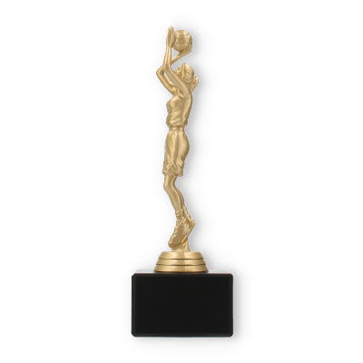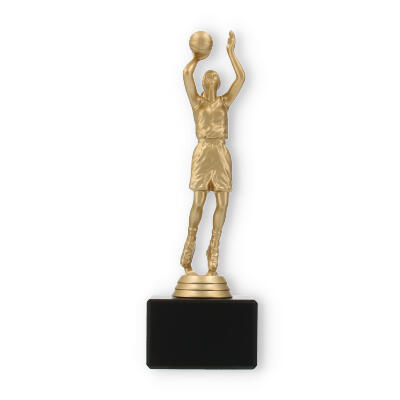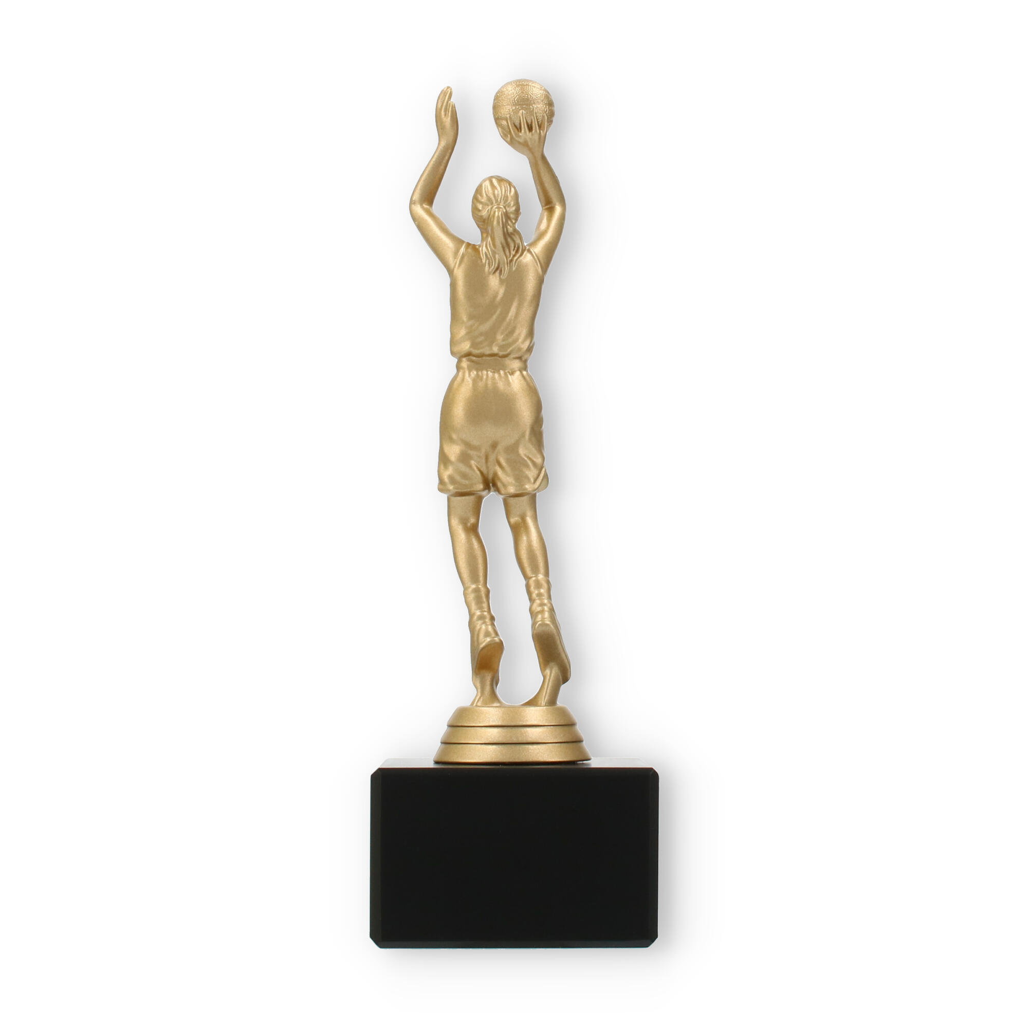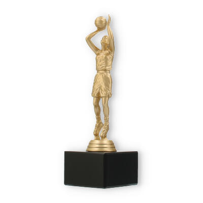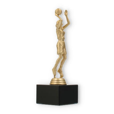 Conheça o troféu de basquetebol, projetado para homenagear campeãs. Com uma estatueta dourada, base de mármore preto e gravação pessoal, este troféu é o reconhecimento perfeito para extraordinárias realizações em torneios de basquete.
